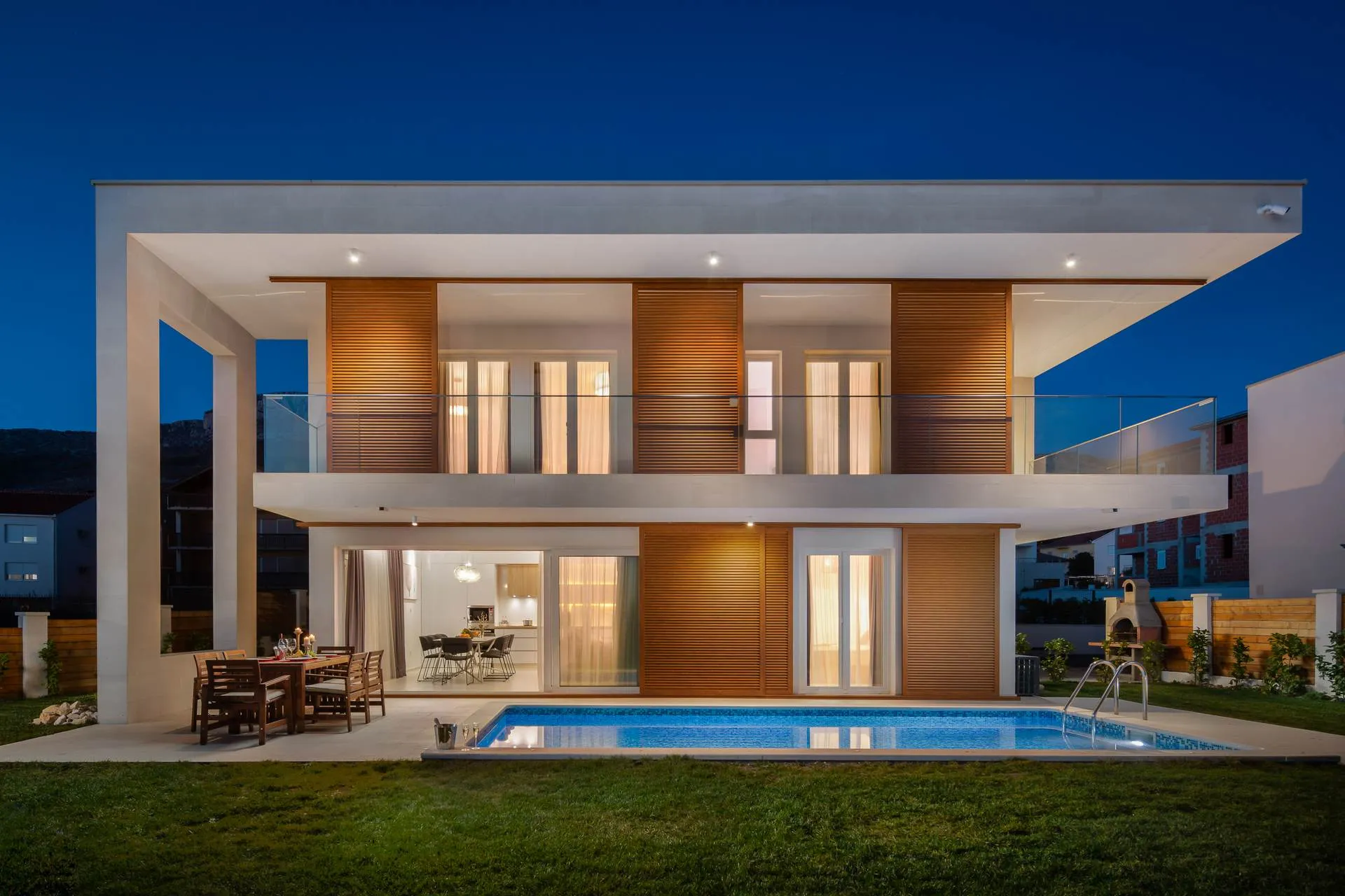 Discover the modern Villa Nia. It is located in a small town, Kastel Gomilica, only 10 km from Split, the second largest city in Croatia and the cultural and tourist center of Dalmatia. The location of this beautifully decorated house will enchant you because it is located in a quiet part of town where you can relax and unwind from the city noise. It is ideal for a family vacation but also for a group of friends who want to have fun. It is only 800 meters from the sea.
